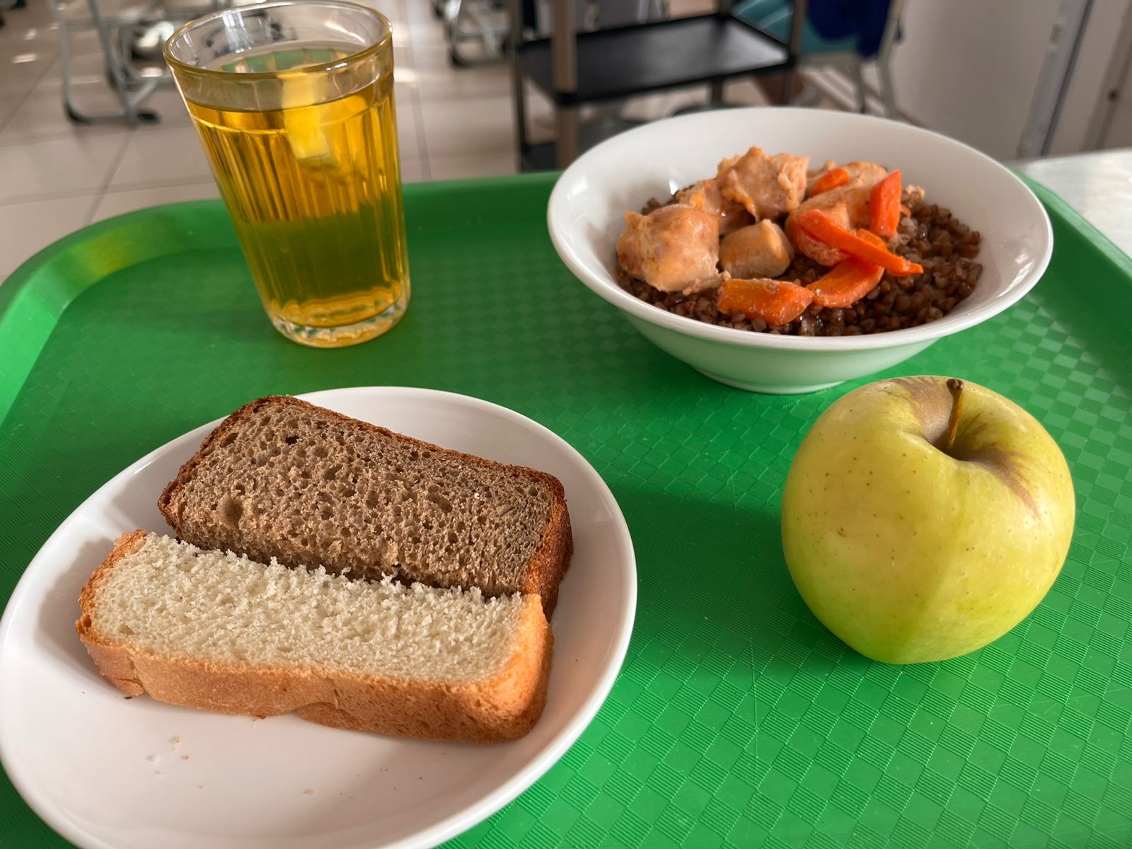 ?құс етінен филе ?Гарнир қарақұмық ?Лимон қосылған шәй ?Алма ?Ақ,қара нан Навигация по записям Тамақтану Тамақтану