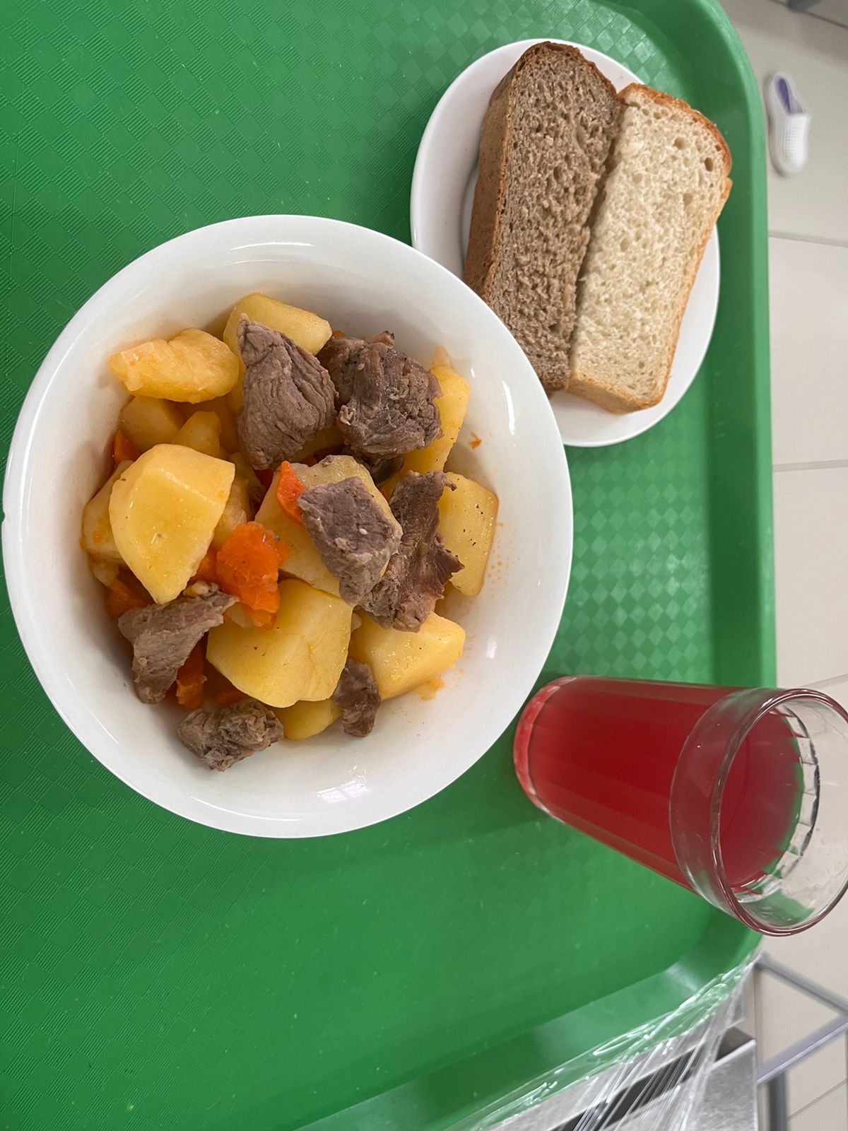 ??Етпен картоп ?Кисель ?Ақ,қара нан