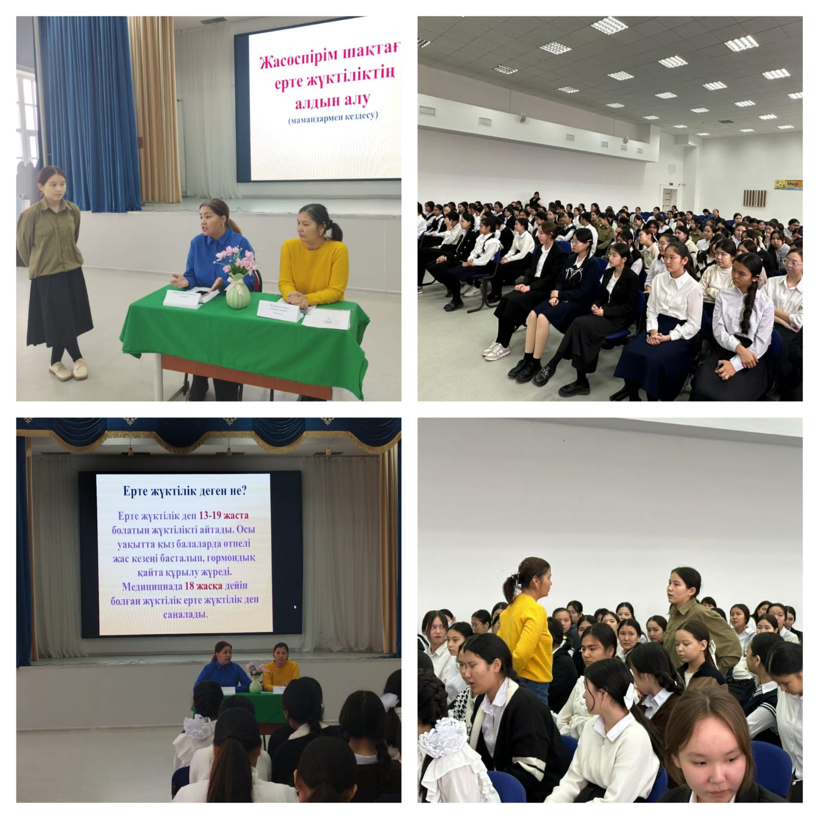 Жалпы білім беретін №39 орта мектебінде жоспарға сай Геолог емханасы мамандары Кабиева Баян Таймановна акушер-гинеколог, Искалиева Айгул Кожагалиевна психолог мамандары 9-11 сынып қыз балаларымен «Жасөспірім шақтағы ерте жүктіліктің алдын-алу» тақырыбында кездесу өткізді.