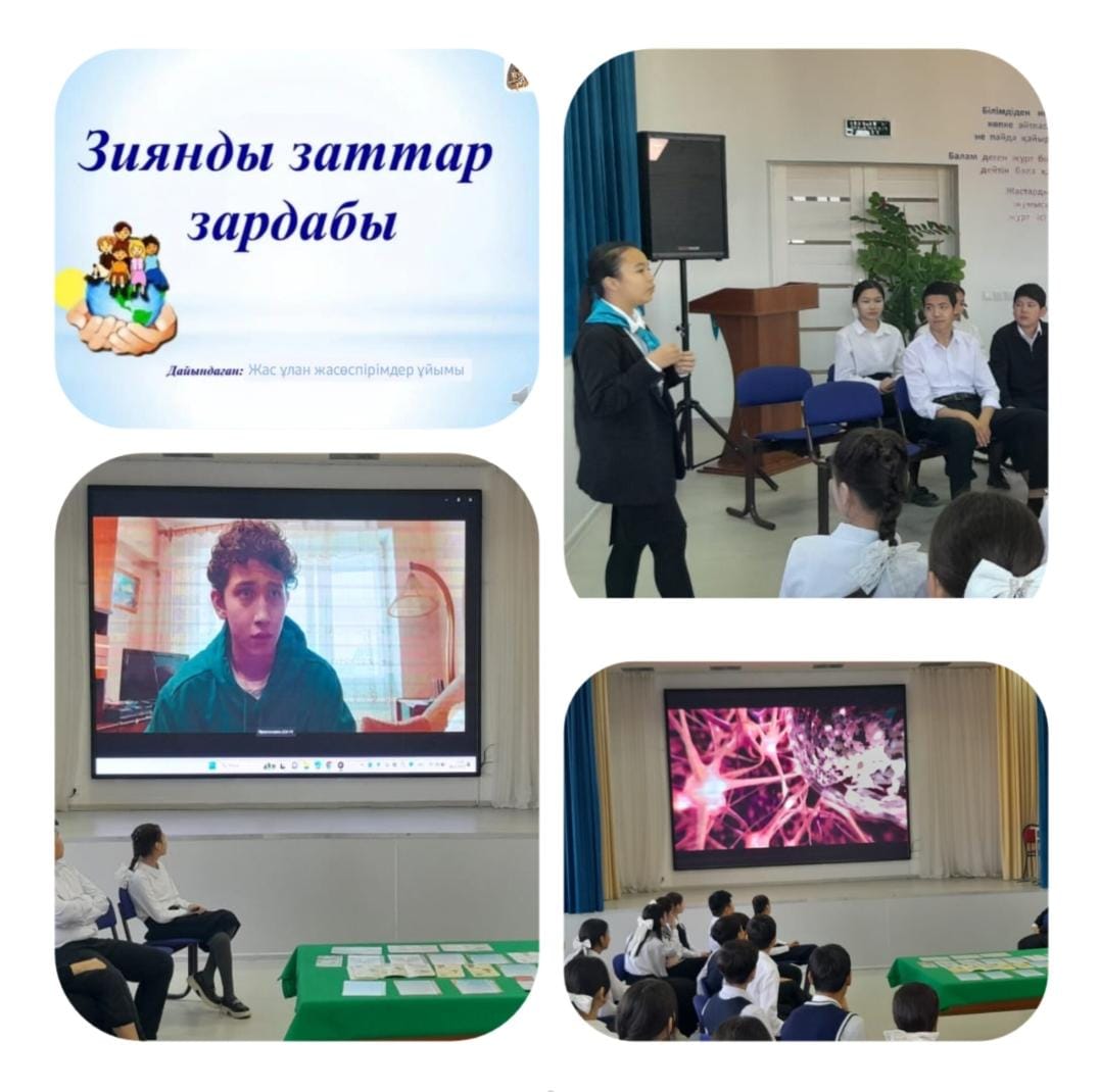Жалпы білім беретін №39 орта мектебінде Жас Ұлан ұйымының САЛАУАТ бағыты бойынша «Салауаттылық өмір салты» тақырыбында мектеп медбикесі Махсутова Раузаның қатысуымен 7, 8 сынып оқушыларына дөңгелек үстел өткізілді. Оқушыларға «Нашақорлық қоғам дерті» бейнеролик корсетіліп, әрі қарай өз ойларын ортаға салды.